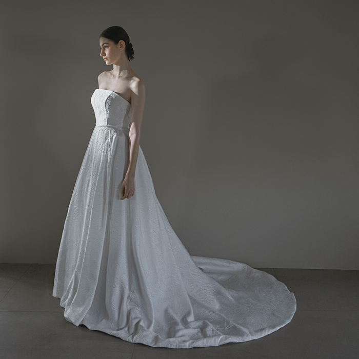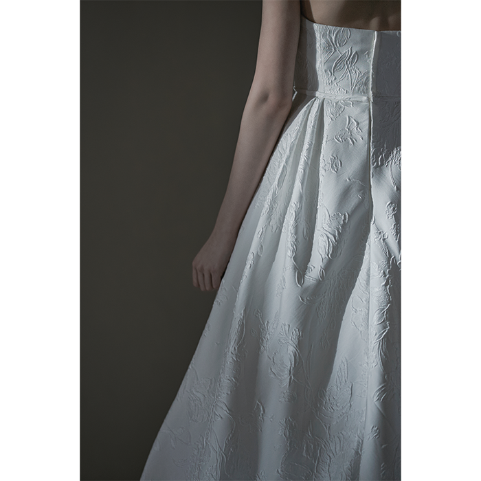 シンプルラインでありながらも生地そのものに加工を施した個性派Aラインドレス。コンパクトにデザインされた上半身と、すっきりとしたシルエットでスタイルアップを狙えます。お好みの小物を合わせて自分らしさをプラスして。